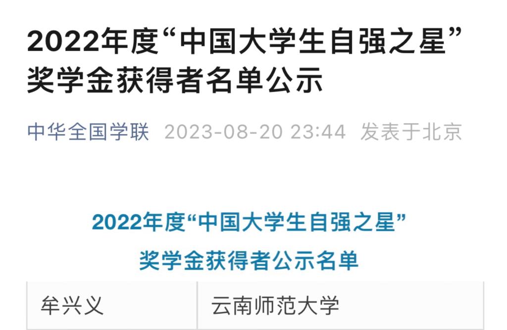近日,由共青团中央、全国学联指导,中国青年报社等联合举办的2022年度“中国老员工自强之星”奖学金评选活动结果揭晓。经公司推荐、省级初评、全国评审等环节,公司2021级马克思主义基本原理专业硕士研究生牟兴义同学荣获“中国老员工自强之星”称号及奖学金。