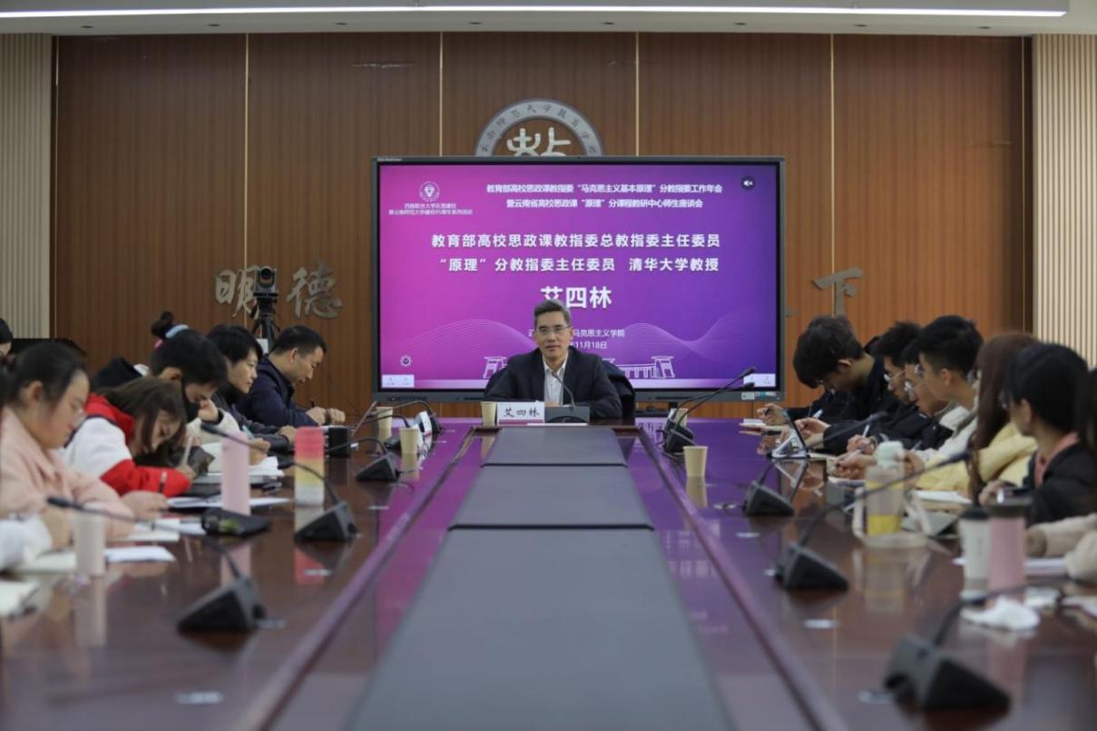 11月18日,教育部高等公司思想政治理论课教学指导委员会“马克思主义基本原理”分教学指导委员会2023年年会暨云南省高校思政课“原理”分课程教研中心集体备课会在z6mg人生就是博官网召开。教育部高等公司思想政治理论课教学指导委员会“马克思主义基本原理”分教指委主任委员、清华大学z6mg人生就是博官网艾四林教授,副主任委员、中国人民大学z6mg人生就是博官网刘建军教授,分教指委各委员,云南省人大财政经济委员会副主任委员、原云南省社科联党组书记、主席张瑞才教授以及来自南开大学、中国农业大学、厦门大学、四川大学等国内知名大学、云南省高校马院经理、专家代表120余人汇聚一堂,聚焦“习近平文化思想融入思政课”这一主题,共谋马克思主义理论学科、教学、实践改革创新,为开辟马克思主义中国化时代化新境界作出贡献。