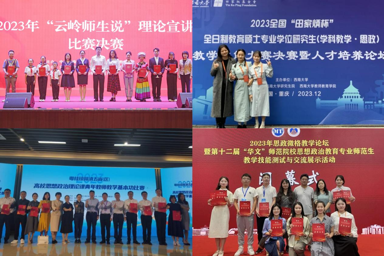 这一年,公司组织教师参加全省思政课教学比赛,成绩斐然。获得了云南省思政课教学展示一等奖2名、二等奖1名;云南省思政课教学技能比赛一等奖3名;2023年粤桂琼赣滇五省(区)高校思政课青年教师教学基本功为二等奖1名。组织员工在第十二届“华文”师范院校思想政治教育专业师范生教学技能测试与交流展示活动中荣获一等奖等佳绩、在“云岭师生说”理论宣讲比赛中斩获二等奖、在全国“田家炳杯”全日制教育硕士专业学位研究生教学技能大赛中荣获三等奖。