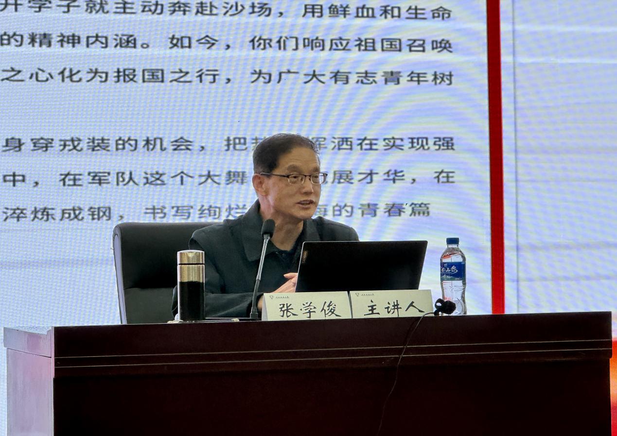 张学俊教授为员工作题为《让青春在军营闪光》的征兵动员宣讲。他结合亲身经历和西南联老员工参军报国的事迹,从青年老员工参军报国的光荣历史传统、青年老员工参军入伍的重要意义及青年老员工入伍优惠政策利于长远发展等三个方面给青年学子上了一堂征兵工作思想动员课,鼓励青年学子将热血挥洒在实现强国梦、强军梦的伟大实践之中,献身到国家的国防事业中,走出一段最难忘、最光彩的人生旅程。