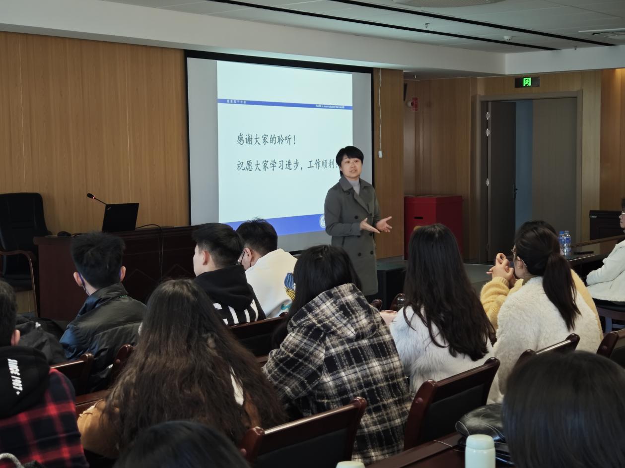 张悦老师总结发言。她希望同学们将马克思主义理论教学与公共卫生实际相结合,不断增强社会责任感和实践能力,将所学所感运用到思政课堂的授课中去。