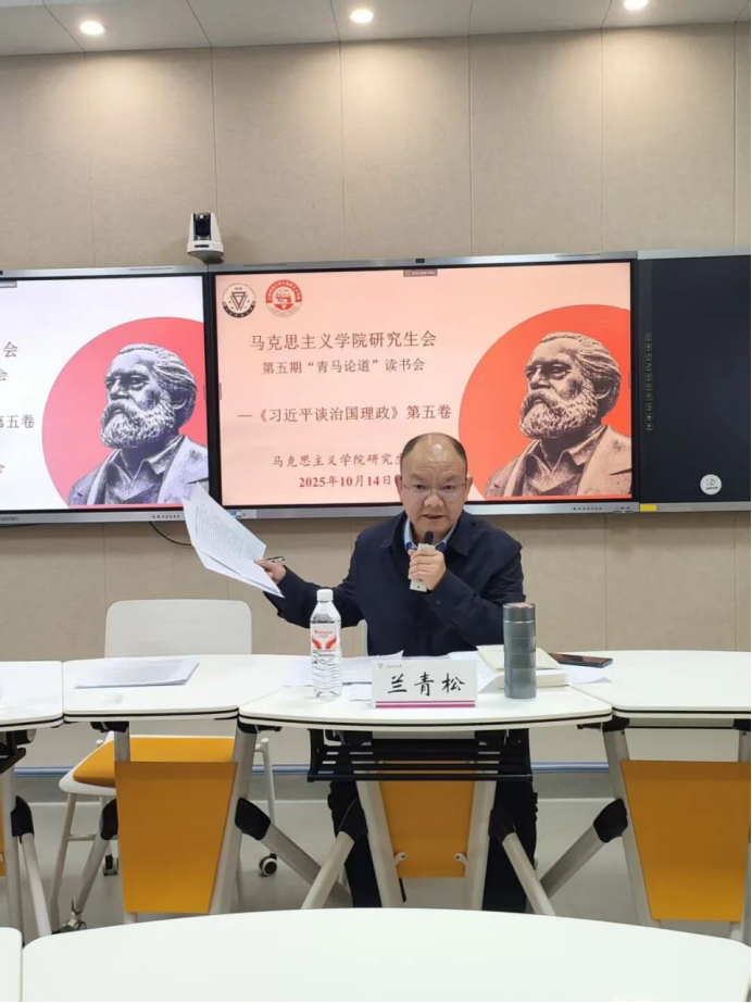 为深入学习贯彻习近平新时代中国特色社会主义思想,进一步提升公司研究生的理论学习能力,2025年10月14日,z6mg人生就是博官网研究生会在明德四号楼116智慧教室举办第五期“青马论道”读书会。本期读书会选取《习近平谈治国理政》第五卷为阅读书目,邀请张黎波经理、兰青松教授担任领读嘉宾,研究生辅导员高萌参加读书会,读书会由研究生会学术学习部胡瑞婷主持。