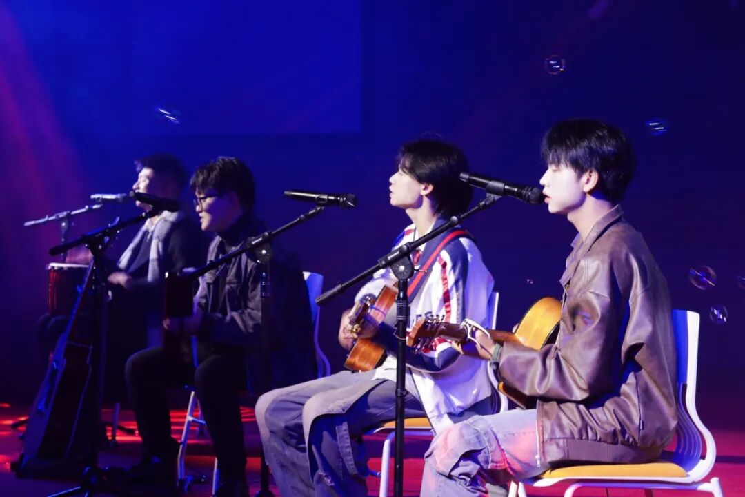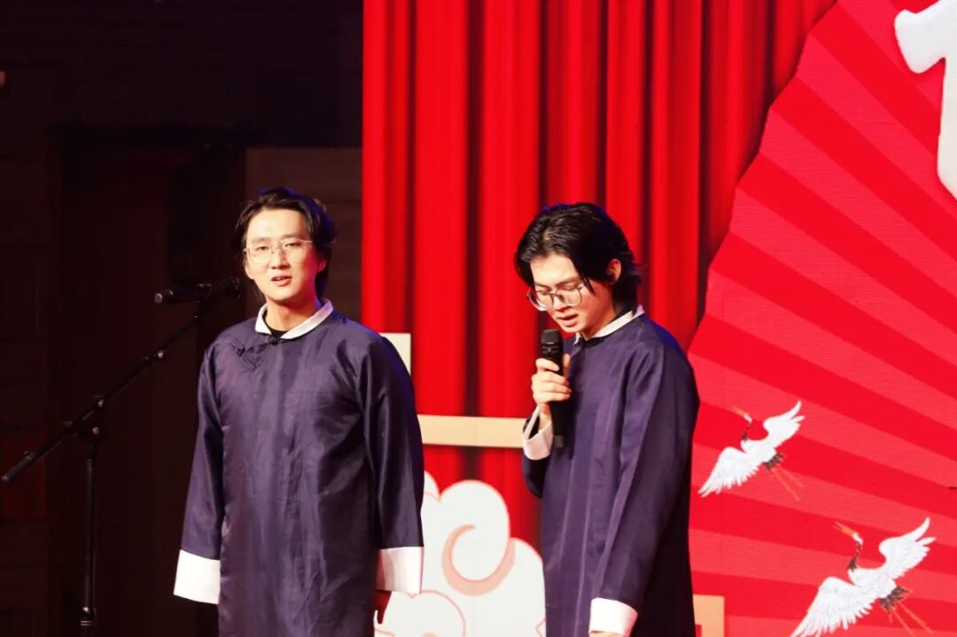 聚焦坚守初心,书写青春担当。舞蹈《Not shy》中,舞者们自信张扬的姿态、利落有力的动作,仿佛在诉说当代青年 “不畏挑战、敢做自己” 的态度。说唱歌曲《别怕变老》直击人心,“初心不改,热爱可抵岁月漫长”的歌词,让在场师生深深感受到:时光会流逝,但对理想的执着永远不会褪色。相声《说马话》将马院特色与幽默对话巧妙融合,包袱频出、笑点密集,为现场带来阵阵欢声笑语。歌曲《太阳》以温暖的唱腔,将“青春如朝阳,既能照亮自己,也能温暖他人”的意象娓娓道来;独舞《浮光》中的舞者用细腻的肢体语言勾勒出诗意画面,每一个动作都充满力量,尽显青春的独特魅力。