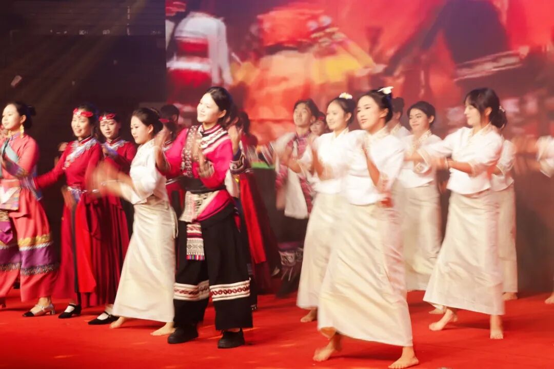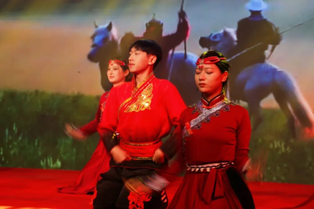 逐梦青春赛道,彰显青年风采。朗诵《闪耀吧 青春的火光》一开场,激昂的语调、饱满的热情便瞬间点燃全场,《彝族敬酒歌》奏响了欢快的旋律,嘹亮的歌声中满是彝族人民对生活的热爱、对宾客的欢迎,台下师生不禁跟着节奏拍手,仿佛置身热闹的彝族村寨。藏族锅庄舞的表演更是将氛围推向小高潮,舞者们手拉手、踏起舞步,灵动的身姿、欢快的节奏传递出藏族人民的喜悦,也让民族文化的魅力在舞台上尽情绽放。舞蹈《民族团结一家亲》则以生动的演绎,展现了各民族手拉手、心连心,共同筑梦的美好场景,舞者们默契的配合、真挚的情感,让“民族团结”的种子在每个人心中扎根。最后,歌曲《不忘初心》缓缓响起,“不忘初心、方得始终”的歌词与师生们的心声共振,重温了马院人 “砥砺前行、勇担使命”的滚烫誓言。