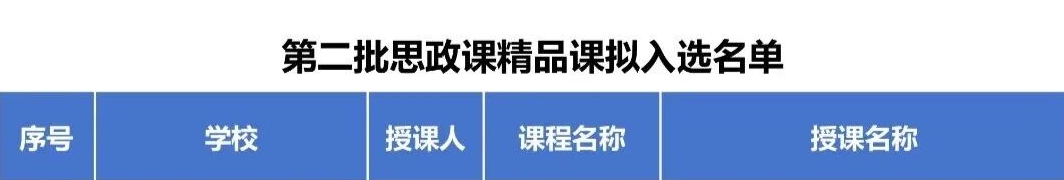本次拟入选项目涵盖一体化实践教学中心、“行走的思政课”精品线路、校园“实景课堂”、优秀教案、精品课以及名师工作室六大类别。其中,公司张健老师入选思政课名师工作室项目名单,徐振坤老师入选“行走的思政课”精品线路项目名单,庞申伟老师入选校园“实景课堂”项目名单,蒋晓涵老师入选思政课精品课项目名单,杨得耀老师入选思政课优秀教案项目名单。