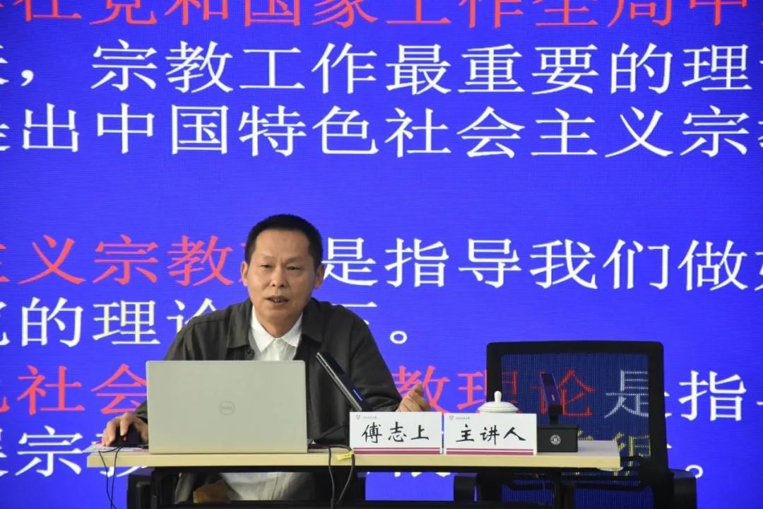傅志上从“宗教的本质及中国特色社会主义宗教理论”“云南宗教工作面临的形势与任务”和“全面贯彻党的宗教工作基本方针”三个方面对习近平总书记关于宗教工作的重要论进行解读,指出云南作为多民族省份,在宗教工作方面临着新特点、新要求和新任务,他强调了高校筑牢意识形态阵地的重要性,提醒广大师生要提高防范意识,积极引导宗教与社会主义社会相适应。