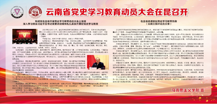 阮成发要求,要把握正确导向,压紧压实责任,紧密联系实际,创新方式方法,营造良好氛围,高标准高质量完成党史学习教育各项任务。要深入挖掘整理云南丰富的红色文化资源,弘扬光荣革命传统,开展“永远跟党走”“传承红色基因”“学习先进典型”“红色故事大家讲”等系列活动,不断增强学习教育的针对性和实效性。