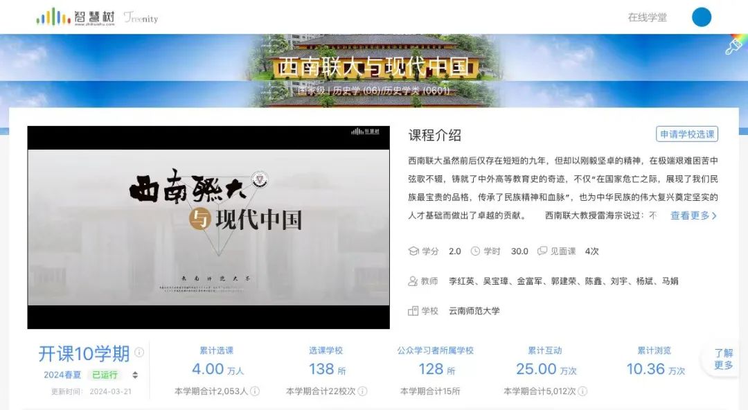 依托课程思政建设项目,公司开设“西南联大与现代中国”精品课程,全国110所高校2万余员工选修,获评国家级一流课程。