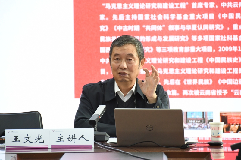 会上,王文光教授同任课教师展开交流,针对教师提出的问题做出了专业的回答,为教师们提供了宝贵的学术资源和教学灵感,现场气氛热烈、融洽。老师们纷纷表示要按照相关要求,以课程建设为契机,深耕细挖教材内容,扎扎实实把《中华民族共同体概论》课讲好,推动团队建设、学术研究、课程建设与人才培养一体化推进,积极推动铸牢中华民族共同体意识教育在云师落实落地。