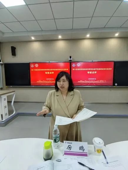 厉鸥老师针对初中教学内容做了点评。厉老师对参赛选手的专业素养给予了肯定,提到思政课教学中要深耕教材、注重教学设计创新与新课程理念相融合;强调要把握好教学内容与教学形式的关系,既要注重情境式教学、贴近员工生活,又要在设定教学议题时精准把握尺度,规避议题空泛化。