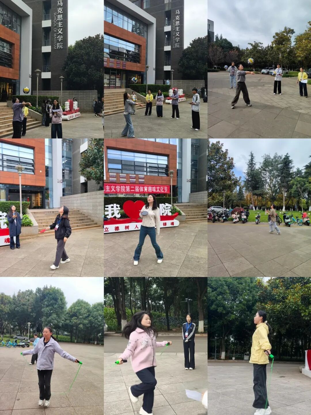 室外活动共有跳绳、垫排球、乒乓球接力赛(团队)三个项目,现场气氛热烈有序。同学们身手矫健,各显其能,充分展现了力争上游的精神面貌。团队活动中,各支队伍团结协作,默契配合,活动现场加油助威、欢声笑语此起彼伏,将现场气氛一次次推向高潮。